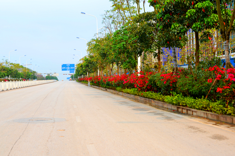本项目位于国凯大道,于2014年12月开工,2015年1月完工,绿化面积约1200㎡,种植主要品种有:朱槿、夹竹桃、非洲茉莉、木槿、红花继木、三角梅、星光榕、亮叶朱蕉、银边沿阶草等