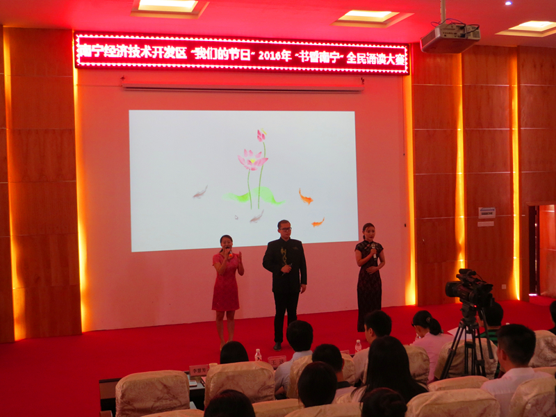 据了解,为大力培育和践行社会主义核心价观,传承中华传统节日和中华传统国学文化,倡导全民阅读,南宁市已连续多年举办“书香绿城”系列读书活动和经典诵读活动。接到经开区开展比赛的通知后,集团领导高度重视,把该活动作为推动企业文化建设的一个有利契机,积极组织人员参赛。集团领导亲自带队,精心挑选了参赛作品,利用节假日的休息时间,加班加点进行排演,逐字逐句地调整校正发音。为丰富表演形式,还让集团擅长制作PPT的职工结合诵读的内容制作了动态PPT,使表演更精彩。