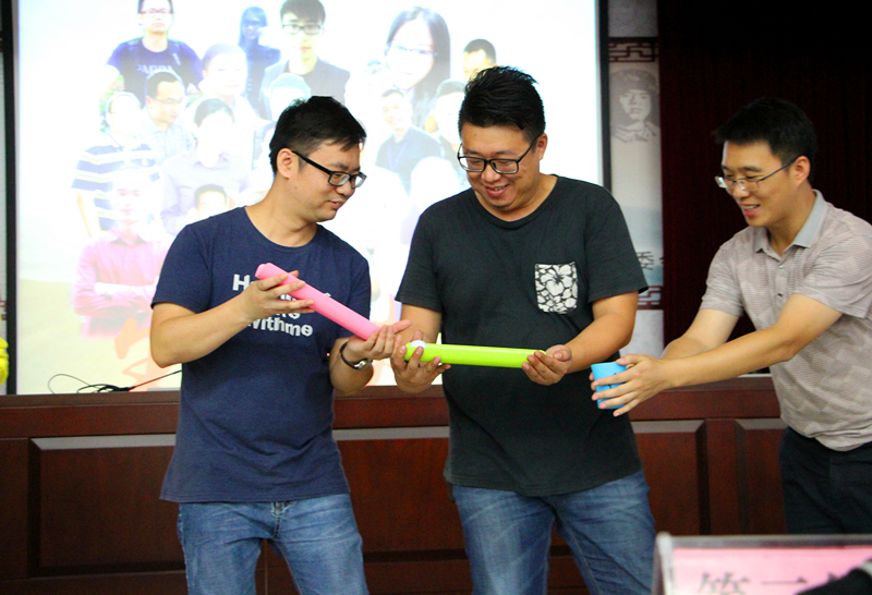 既然是集体过生日,自然少不了有趣欢乐的集体游戏,在大家的欢声笑语中,“前世队”通过队员的齐心协力、相互配合,战胜了“今生队”,赢得切蛋糕的“屠龙刀”。最后,大家围绕着甜蜜的生日蛋糕,齐唱生日祝福歌,一起吹蜡烛、吃蛋糕,共同度过了一次愉快而又温馨的集体生日会。