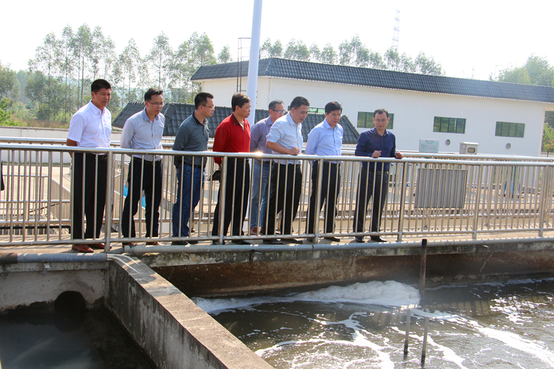 经开区党工委书记、管委会主任何尚汉一行查看吴圩污水处理厂运行情况