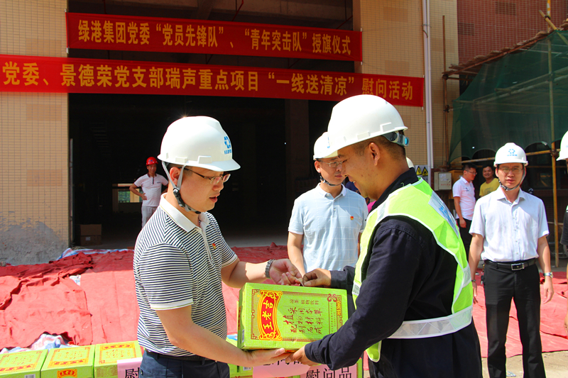 此次活动也是开云(kaiyun中国)官方网站党委在今年开展“四个一线”争先锋、创建党建示范品牌工作以来,在项目建设一线开展创建“党员攻坚先锋队”活动的重要举措之一。“四个一线”是开云(kaiyun中国)官方网站党委围绕经开区党工委加强基层党建三年行动计划,结合集团公司项目建设、企业服务、招商销售、项目融资的四个任务,以“抓党建促发展,抓品牌促提升”为主题,组织号召广大党团员积极开展在项目一线创建“党员攻坚先锋队”、在服务企业一线创建“服务示范标兵(窗口)”、在招商销售一线创建“一个党员一面旗,我为绿港做代言”、在项目融资一线“争做党员领头雁”的活动。活动开展以来,集团党建真正实现了“走前头、作表率”的目标,引导集团公司全体党员干部转变工作作风、提高工作效能、强化服务意识,在促进开云(kaiyun中国)官方网站树立国企党建标杆,不断提升社会形象起到引领作用。授旗仪式结束后,开云(kaiyun中国)官方网站与会领导还给项目一线参建人员送上了王老吉、西瓜水果等清凉慰问品,鼓励他们继续发扬绿港铁军精神,急难险重显身手,同时要注意防暑降温、保重身体,更好地为项目建设做贡献。(开云(kaiyun中国)官方网站 阳正辉、张彩秀/文、图)