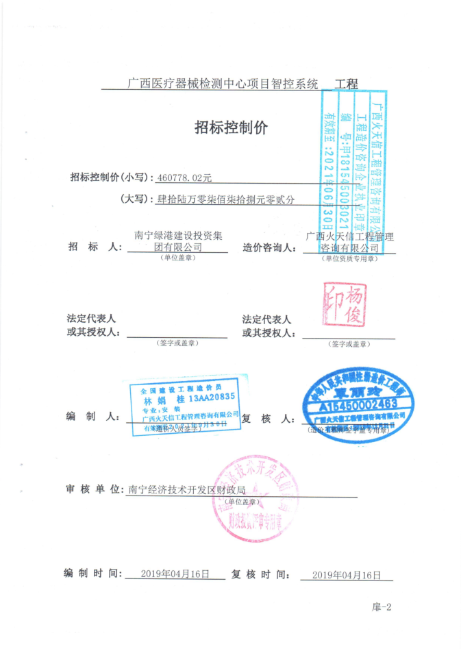 项目招标控制价:人民币肆拾陆万零柒佰柒拾捌元零贰分(¥460778.02元)