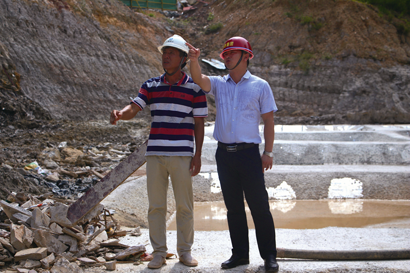 何小勇(右一)对现场施工进行指导
