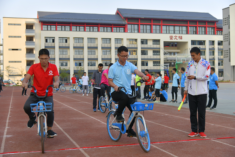 趣味类的活动更讲究技巧和团队合作,比如快乐运球,五个人用身体顶着健身球往前跑,带头的人既不能跑太快,后方的人也不能拼命挤或拉开距离,这样球才不容易被挤落。为了赢得比赛,参赛队员们可没少费脑力,最终他们凭借集体的智慧和团队的合作,在运动场上都发挥了出色的表现。报名人数最多的滚铁圈项目,则以独特而怀旧的道具吸引了65人报名参加。随着铁圈飞转,它仿佛让大家回到了快乐的童年时光,不少职工撒开腿欢跑起来。即便有些运动员从来就没有玩过滚铁圈,滚得歪歪扭扭,也勇于尝试,坚持完成比赛,赢得了两旁观众们的掌声。