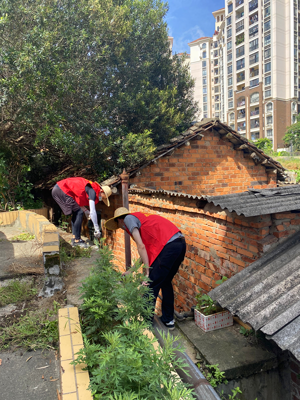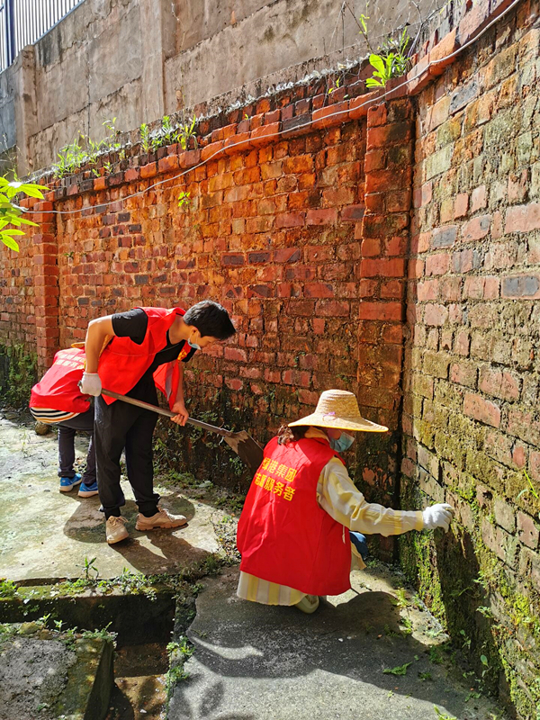 铲掉青苔,复砖红墙面
