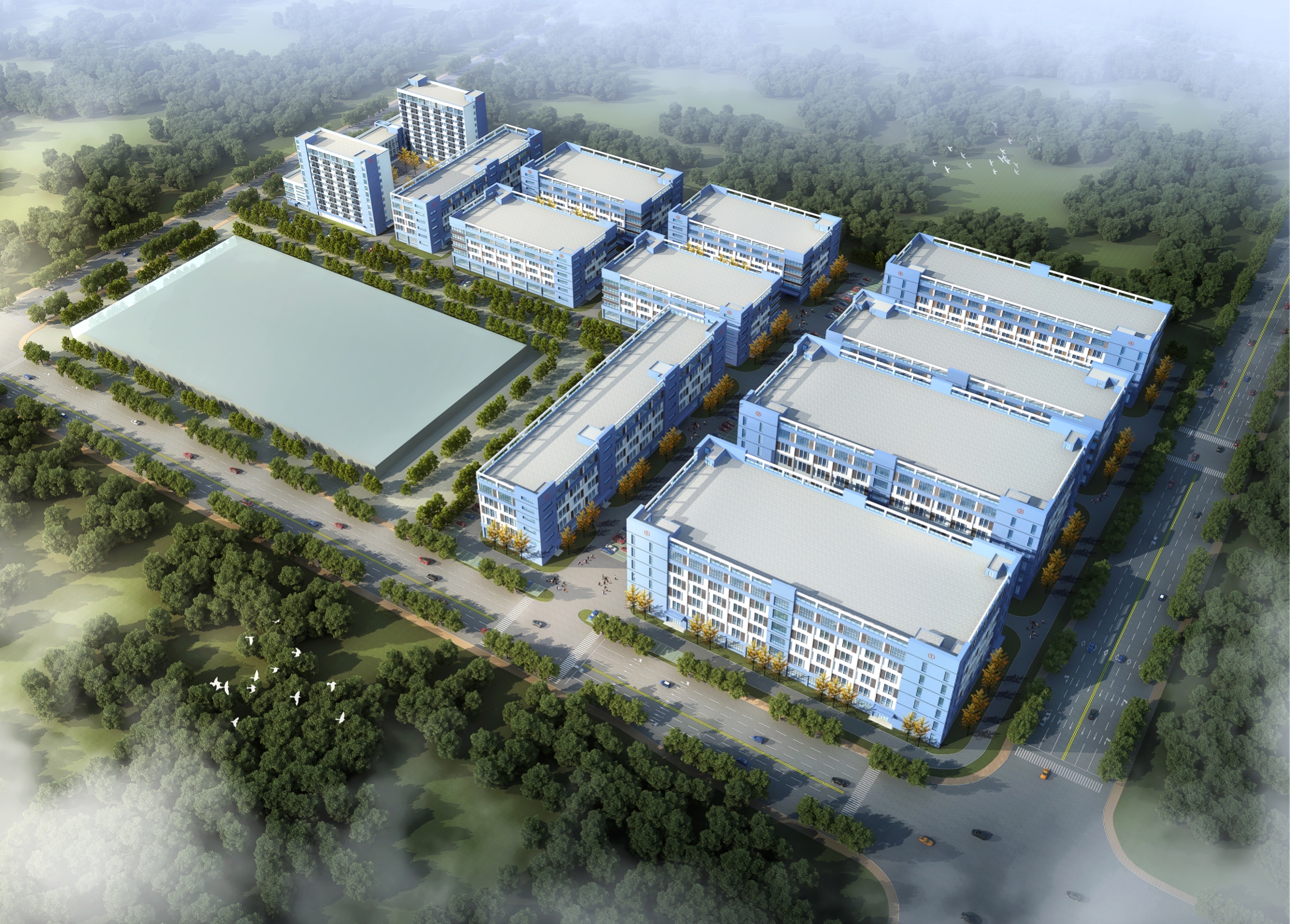 绿港•金阳产业城项目位于高岭路南侧、金阳路东侧,项目占地面积约143.2亩,一共建设10栋厂房,2栋宿舍楼,1栋配套用房,总建筑面积为234568.25㎡,总投资额约8亿元。项目分三期进行开发建设,一期项目将建设1栋6层标准厂房,1栋5层仓库(地下局部1层),2栋11层宿舍楼,1栋4层配套用房,总建筑面积约83235.77㎡,预计2022年5月竣工。二期、三期开发建设前期工作目前正紧凑开展施工图设计阶段工作。