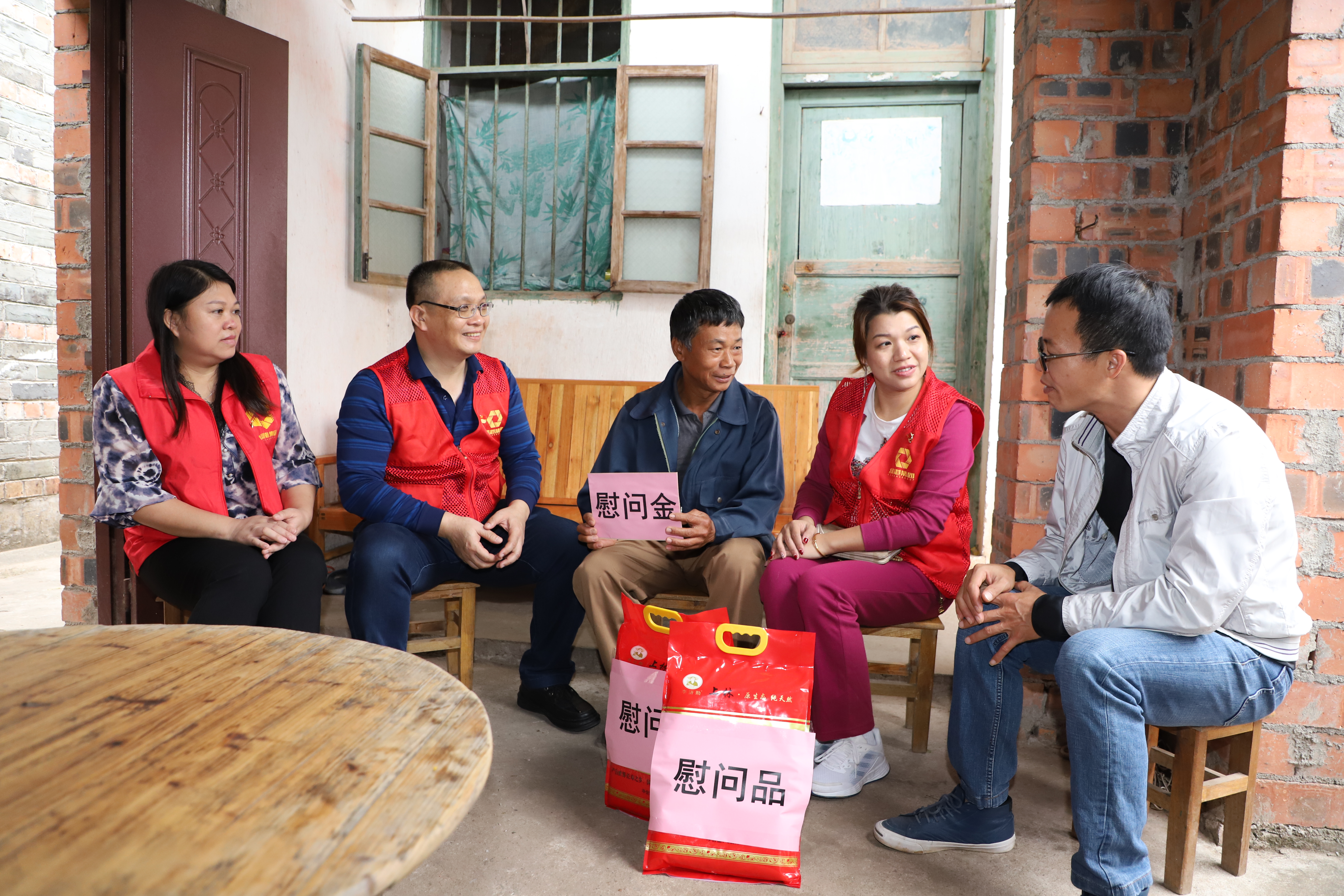 10月28日,开云(kaiyun中国)官方网站党委委员、纪委书记兰赤寿带领开云(kaiyun中国)官方网站各党支部、团总支代表一行来到对口帮扶的邕宁区蒲庙镇联团村开展“巩固脱贫攻坚成果 助力乡村振兴”慰问活动。经开区综治办、生态环境局、蒲庙镇联团村驻村第一书记何承逊以及联团村村干部参加了慰问活动。