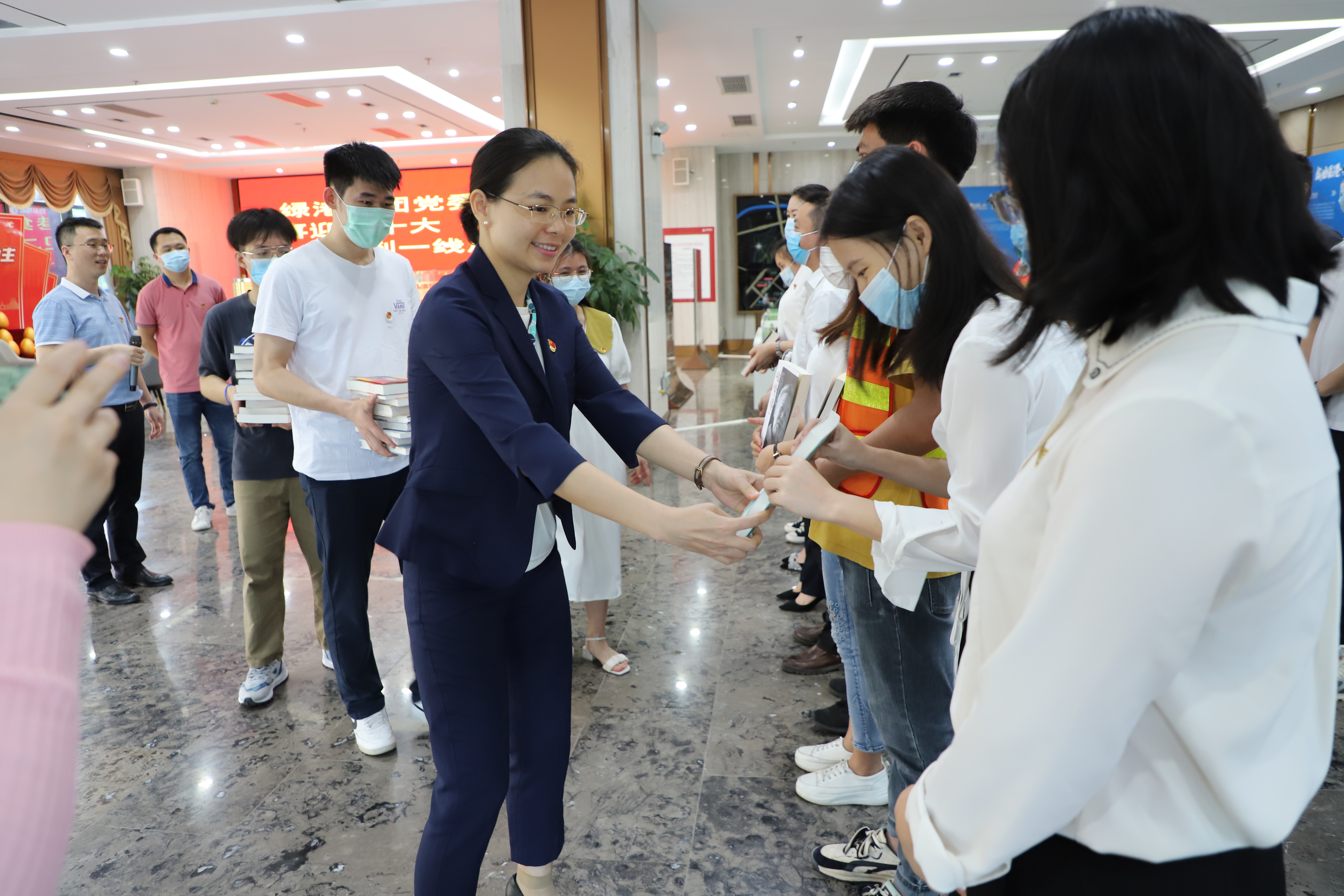 嘉通公司双创城项目负责人秦桂畅为工人们发放了新书,并带头分享了自己近期在读的书籍,激励一线员工要注意劳逸结合,充实自己的精神世界。