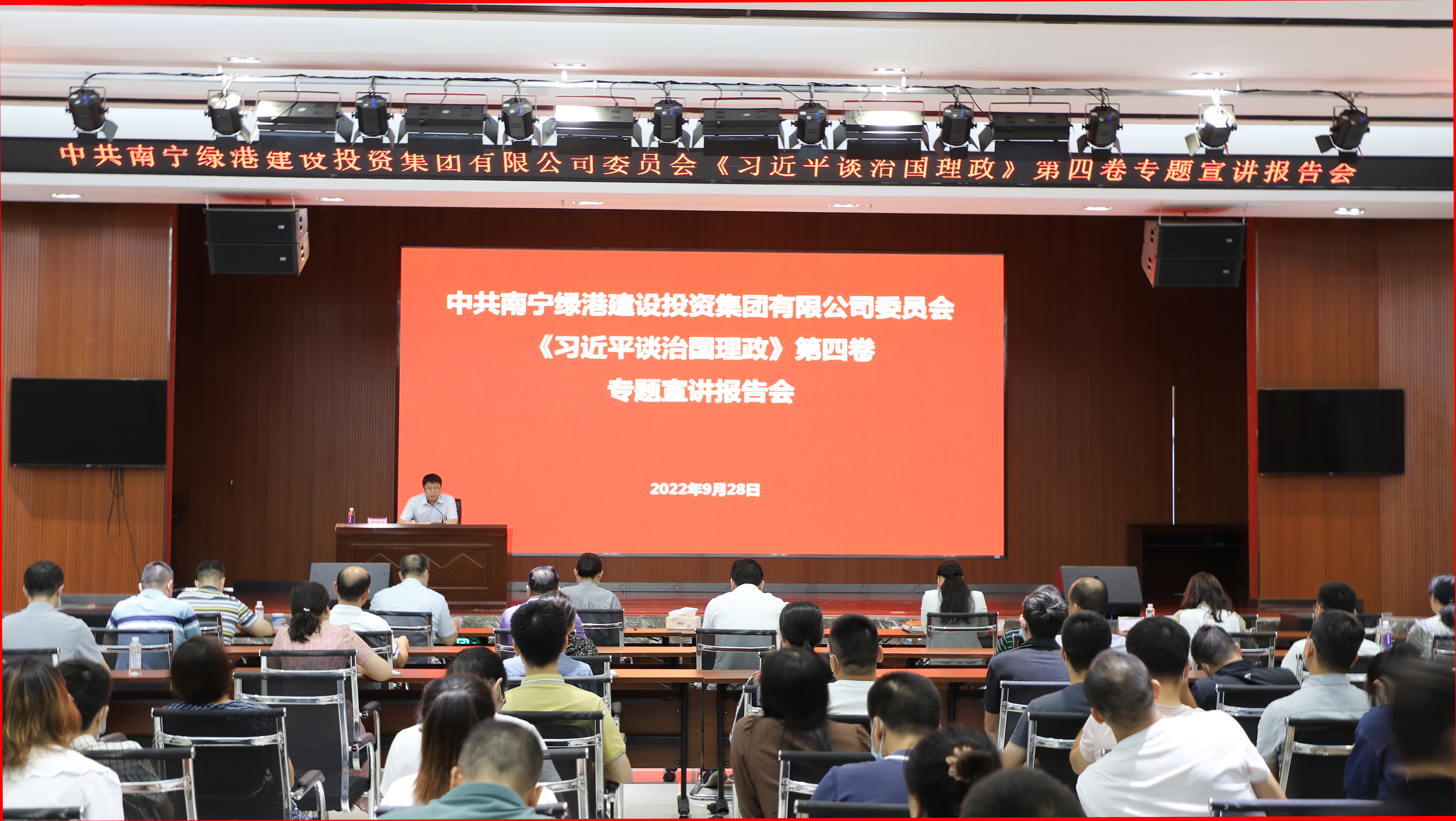为进一步深入学习贯彻习近平新时代中国特色社会主义思想,增强广大党员干部理想信念,进一步解放思想,改革创新,担当实干,推动集团公司各方面工作高质量发展。9月28日,绿港集团党委召开学习《习近平谈治国理政》第四卷专题宣讲报告会。广西区委党校副校长、广西行政学院副院长、广西区委党校机关党委书记马宁教授到现场作专题宣讲。集团公司全体党员、预备党员参加宣讲会。会议由集团党委副书记、总经理邓继慧主持。