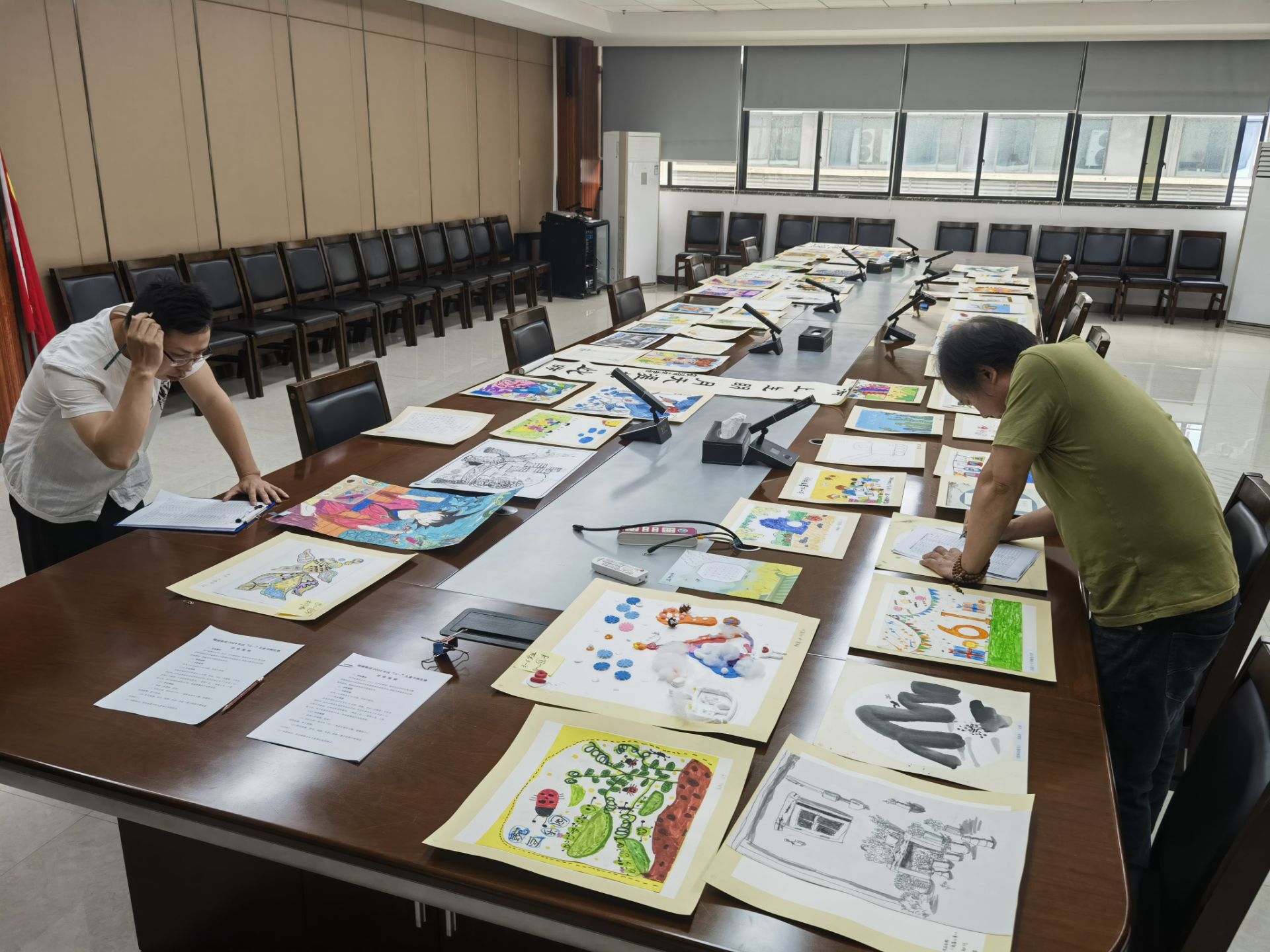 为了确保比赛的公正性和专业性,绿港集团创新性地采用了现场与远程相结合的评审模式,特邀专业评委老师、学生评委组成评审团。部分无法亲临现场的评委远程参与了作品评审过程,与现场评委一同对参赛的65幅作品从绘画主题、构图完整、色彩和谐、作品感染力和创作力等方面对作品进行细致地考量打分,确保每一幅作品都能得到公平且专业的评价。经过多轮严格筛选,最终从两个年龄段组别(3-6岁、7-12岁)中评选出了共计14个奖项的得主,包括每个组别的一等奖1名、二等奖2名、三等奖4名。
