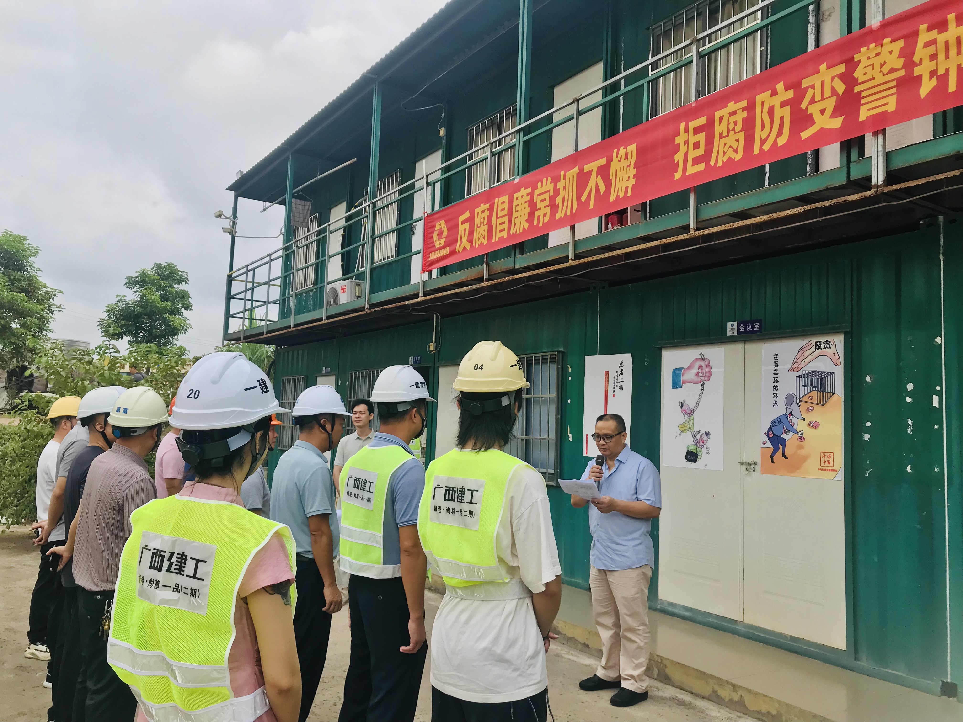 近日,为筑牢工程建设领域廉洁防线,夯实廉洁从业根基,推动全面从严治党、党风廉政建设和反腐败工作向纵深发展,开云(kaiyun中国)官方网站在绿港·尚尊一品项目一线组织开展廉政文化进工地活动。集团党委委员、纪委书记兰赤寿主持活动并讲话,项目业主代表、施工单位、监理单位有关管理人员以及集团纪检监察审计部全体人员参加活动。