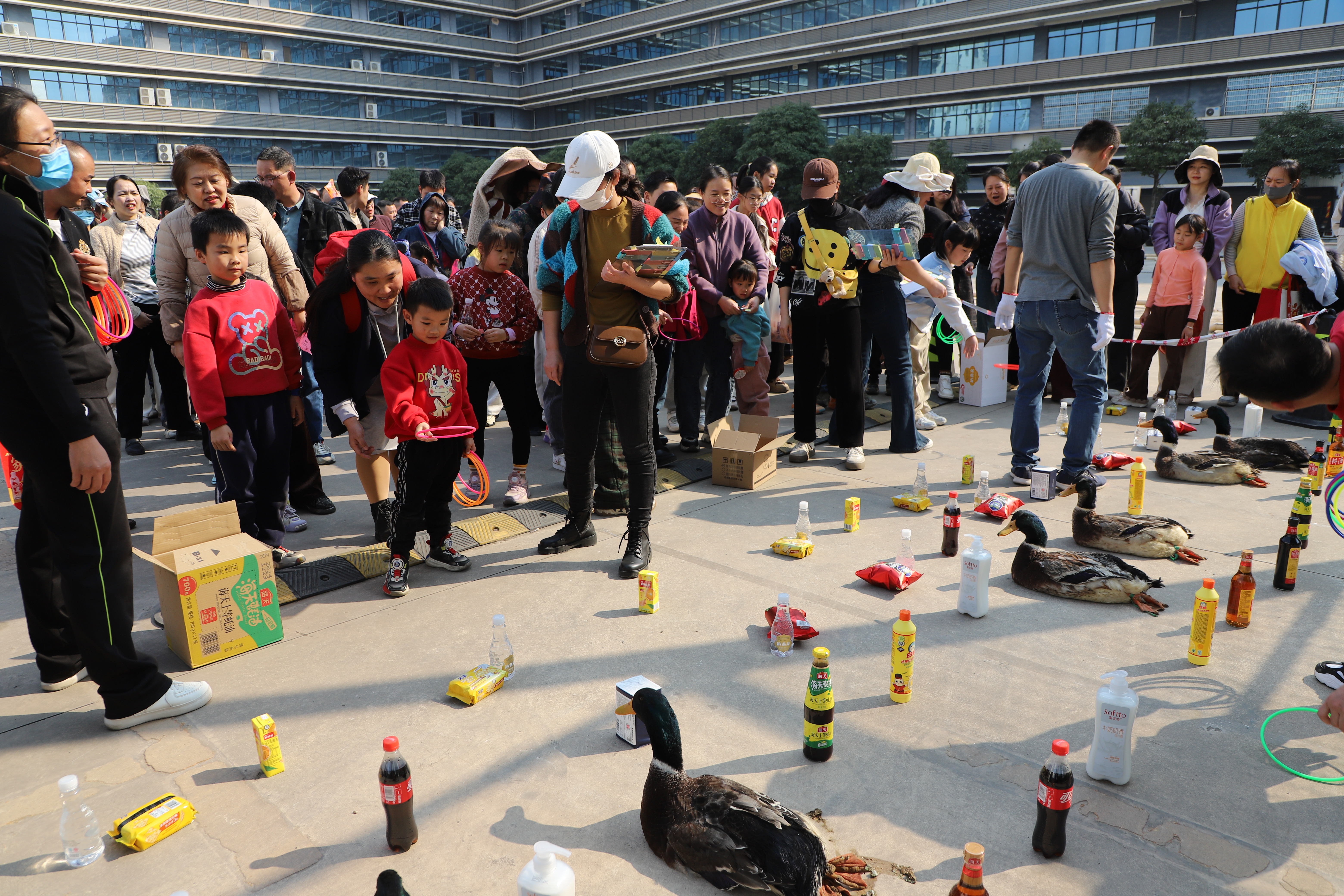 本次游园活动设8个趣味游戏,“套圈”“蒙眼踏步”“投壶”“一鼓作气”“对战叠叠乐”“幸运铲钱手”“头顶投篮”“来打我鸭”丰富多样的趣味游戏让大家乐在其中,踊跃参与,欢笑声此起彼伏,现场气氛十分活跃。