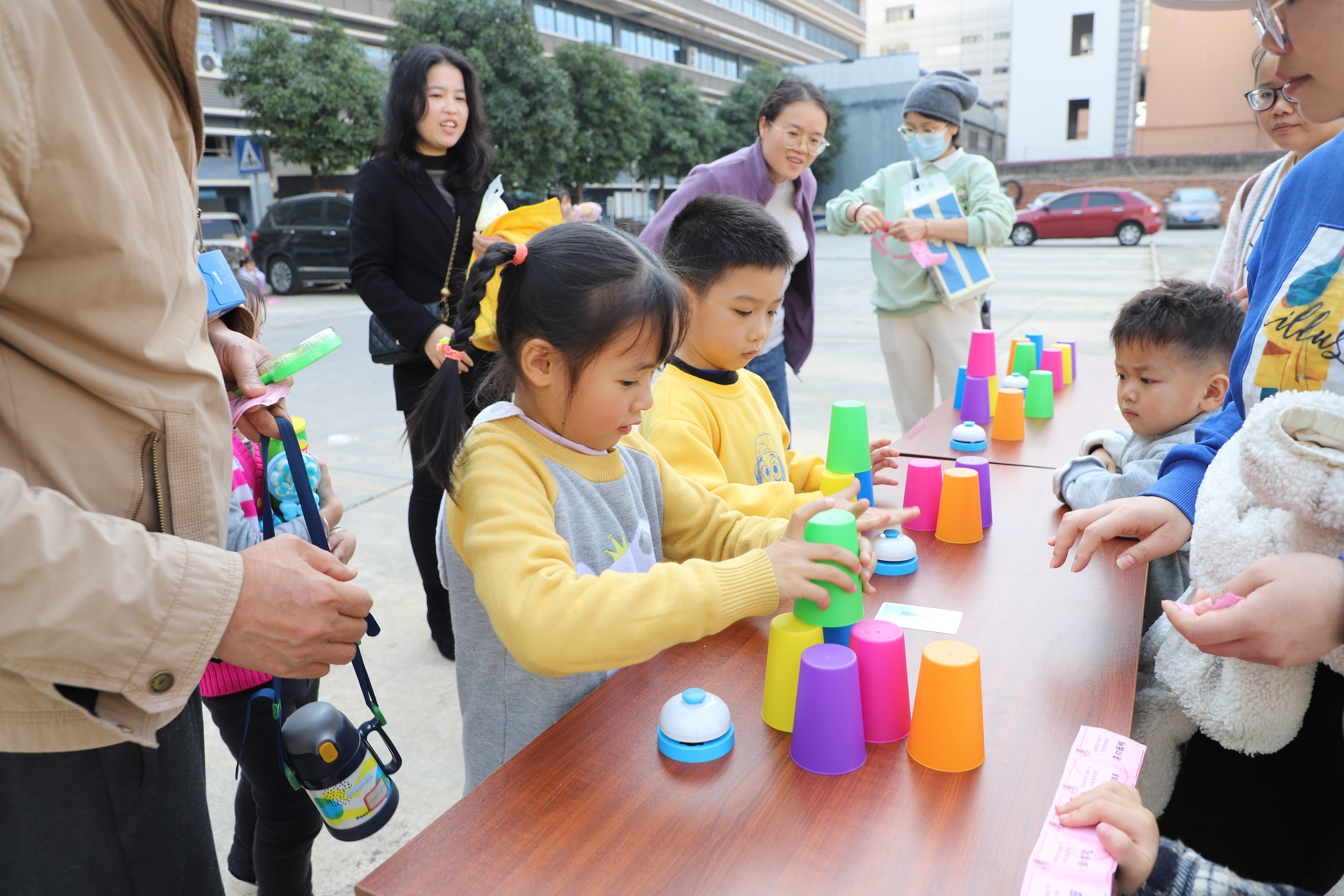 “对战叠叠乐”则激发了大家的胜负欲。大家小心翼翼地调整着杯子的位置,最先按图案叠好杯子的获胜。“耶!我赢了!”最先获胜的小伙伴兴奋地欢呼着。